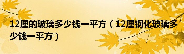 导读 大家好,今天小六子来为大家解答以下的问题,关于12厘的玻璃多少钱一平方,12厘钢化玻璃多少钱一平方这个很多人还不知道,现在让我们一起来