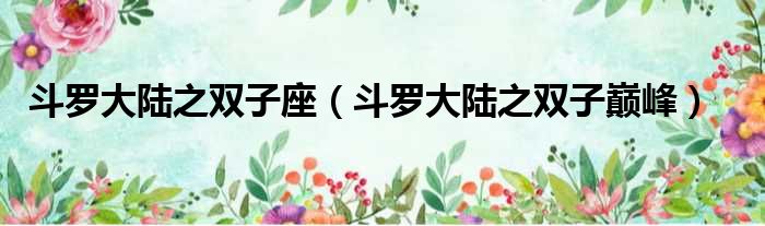 斗罗大陆之双子座(斗罗大陆之双子巅峰)