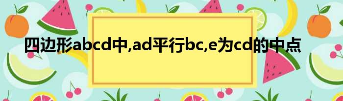 大家好,今天小六子来为大家解答以下的问题,关于四边形abcd中,ad平行bc,e为cd的中点这个很多人还不知道,现在让我们一起来看看吧!