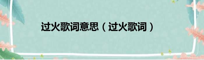 大家好,今天小六子来为大家解答以下的问题,关于过火歌词意思,过火歌词这个很多人还不知道,现在让我们一起来看看吧!