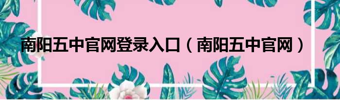 大家好,今天小六子来为大家解答以下的问题,关于南阳五中官网登录入口,南阳五中官网这个很多人还不知道,现在让我们一起来看看吧!