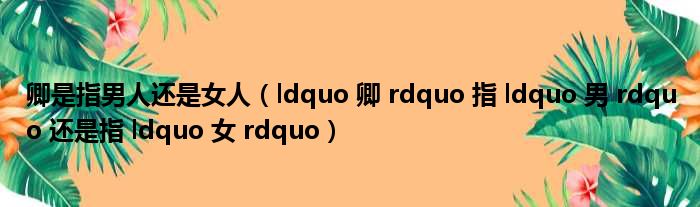 导读 大家好,今天小六子来为大家解答以下的问题,关于卿是指男人还是女人,ldquo 卿 rdquo 指 ldquo 男 rdquo 还是指 ldquo 女 rdquo