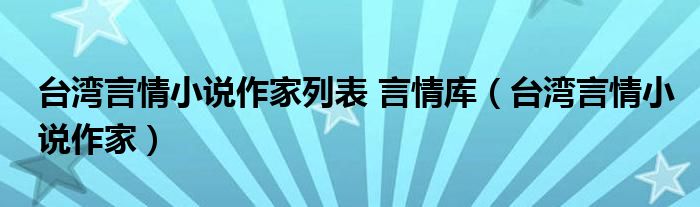 大家好,今天小六子来为大家解答以下的问题,关于台湾言情小说作家列表 言情库,台湾言情小说作家这个很多人还不知道,现在让我们一起来看看吧!