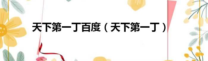 天下第一丁百度(天下第一丁)