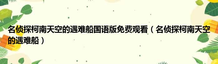 名侦探柯南天空的遇难船国语版免费观看(名侦探柯南天空的遇难船)