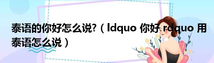 泰语的你好怎么说?(ldquo 你好 rdquo 用泰语怎么说)