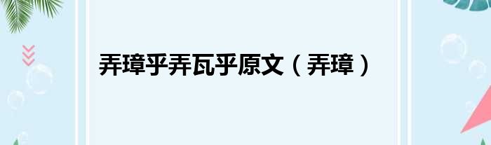 大家好,今天小六子来为大家解答以下的问题,关于弄璋乎弄瓦乎原文,弄璋这个很多人还不知道,现在让我们一起来看看吧!
