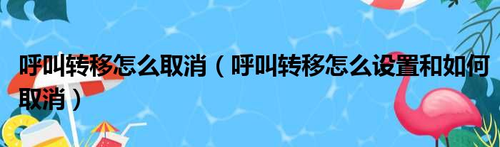 呼叫转移怎么取消(呼叫转移怎么设置和如何取消)