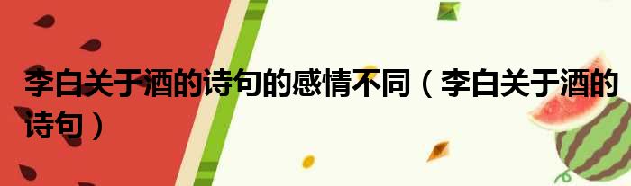 李白关于酒的诗句的感情不同(李白关于酒的诗句)
