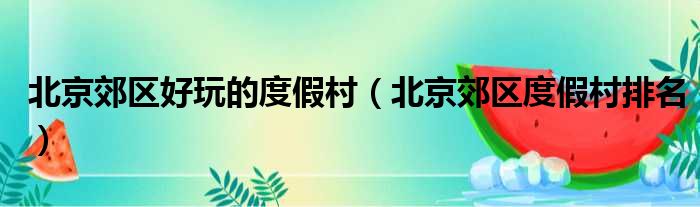 北京郊区好玩的度假村(北京郊区度假村排名)