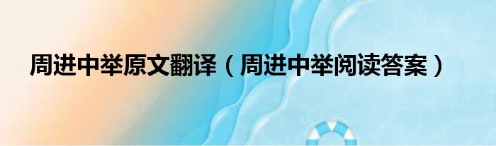导读 大家好,今天小六子来为大家解答以下的问题,关于周进中举原文翻译,周进中举阅读答案这个很多人还不知道,现在让我们一起来看看吧!1、弟夏