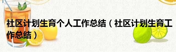 社区计划生育个人工作总结(社区计划生育工作总结)