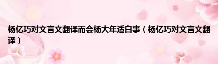 导读 大家好,今天小六子来为大家解答以下的问题,关于杨亿巧对文言文翻译而会杨大年适白事,杨亿巧对文言文翻译这个很多人还不知道,现在让我们