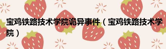 宝鸡铁路技术学院诡异事件(宝鸡铁路技术学院)