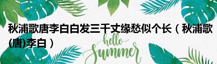 秋浦歌唐李白白发三千丈缘愁似个长(秋浦歌(唐)李白)