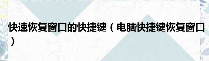导读 大家好,今天小六子来为大家解答以下的问题,关于快速恢复窗口的快捷键,电脑快捷键恢复窗口这个很多人还不知道,现在让我们一起来看看吧!1