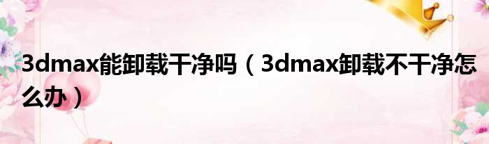 导读 大家好,今天小六子来为大家解答以下的问题,关于3dmax能卸载干净吗,3dmax卸载不干净怎么办这个很多人还不知道,现在让我们一起来看看吧!1