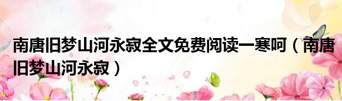 南唐旧梦山河永寂全文免费阅读一寒呵(南唐旧梦山河永寂)