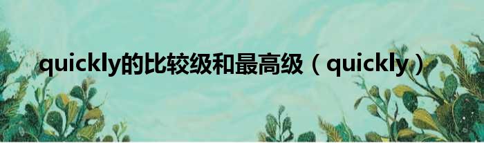 quickly的比较级和最高级(quickly)