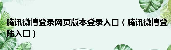 腾讯微博登录网页版本登录入口(腾讯微博登陆入口)