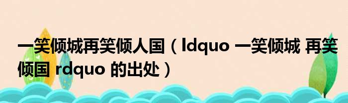 导读 大家好,今天小六子来为大家解答以下的问题,关于一笑倾城再笑倾人国,ldquo 一笑倾城 再笑倾国 rdquo 的出处这个很多人还不知道,现在