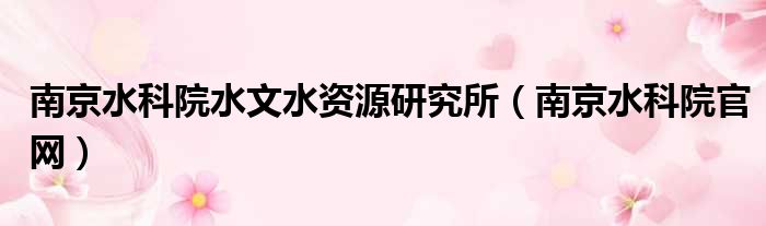 导读 大家好,今天小六子来为大家解答以下的问题,关于南京水科院水文水资源研究所,南京水科院官网这个很多人还不知道,现在让我们一起来看看吧