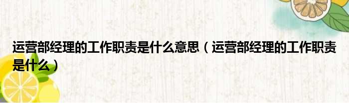 运营部经理的工作职责是什么意思(运营部经理的工作职责是什么)