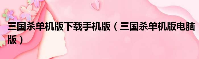 三国杀单机版下载手机版(三国杀单机版电脑版)