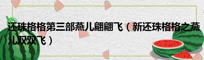 导读 大家好,今天小六子来为大家解答以下的问题,关于还珠格格第三部燕儿翩翩飞,新还珠格格之燕儿双双飞这个很多人还不知道,现在让我们一起来