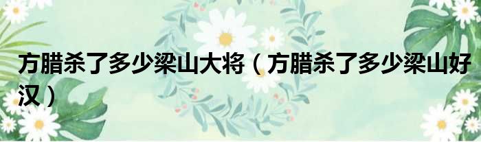 方腊杀了多少梁山大将(方腊杀了多少梁山好汉)