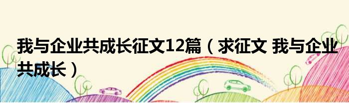大家好,今天小六子来为大家解答以下的问题,关于我与企业共成长征文12篇,求征文 我与企业共成长这个很多人还不知道,现在让我们一起来看看吧!