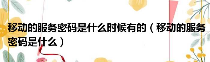 移动的服务密码是什么时候有的(移动的服务密码是什么)