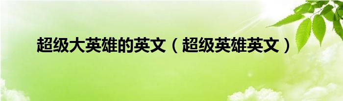 导读 大家好,今天小六子来为大家解答以下的问题,关于超级大英雄的英文,超级英雄英文这个很多人还不知道,现在让我们一起来看看吧!1、super h