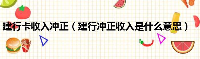 导读 大家好,今天小六子来为大家解答以下的问题,关于建行卡收入冲正,建行冲正收入是什么意思这个很多人还不知道,现在让我们一起来看看吧!1、