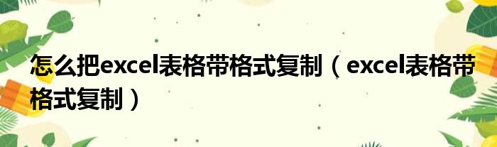 怎么把excel表格带格式复制(excel表格带格式复制)