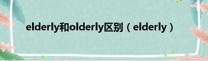 导读 大家好,今天小六子来为大家解答以下的问题,关于elderly和olderly区别,elderly这个很多人还不知道,现在让我们一起来看看吧!1、elder 指
