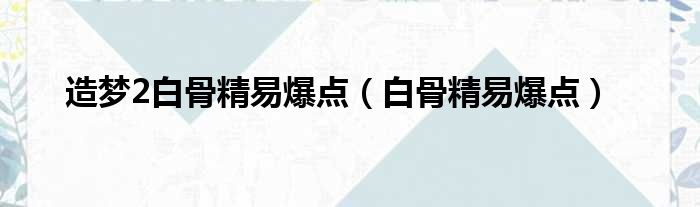 大家好,今天小六子来为大家解答以下的问题,关于造梦2白骨精易爆点,白骨精易爆点这个很多人还不知道,现在让我们一起来看看吧!