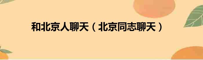 导读 大家好,今天小六子来为大家解答以下的问题,关于和北京人聊天,北京同志聊天这个很多人还不知道,现在让我们一起来看看吧!1、这个,我刚才