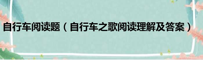 自行车阅读题(自行车之歌阅读理解及答案)