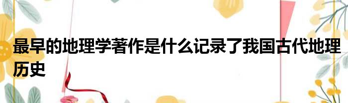 大家好,今天小六子来为大家解答以下的问题,关于最早的地理学著作是什么记录了我国古代地理历史这个很多人还不知道,现在让我们一起来看看吧!