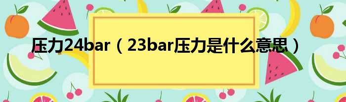 大家好,今天小六子来为大家解答以下的问题,关于压力24bar,23bar压力是什么意思这个很多人还不知道,现在让我们一起来看看吧!