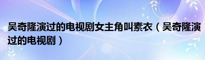 大家好,今天小六子来为大家解答以下的问题,关于吴奇隆演过的电视剧女主角叫素衣,吴奇隆演过的电视剧这个很多人还不知道,现在让我们一起来看看吧!