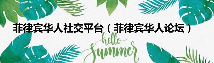 导读 大家好,今天小六子来为大家解答以下的问题,关于菲律宾华人社交平台,菲律宾华人论坛这个很多人还不知道,现在让我们一起来看看吧!1、华人