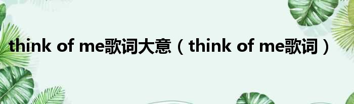 大家好,今天小六子来为大家解答以下的问题,关于think of me歌词大意,think of me歌词这个很多人还不知道,现在让我们一起来看看吧!