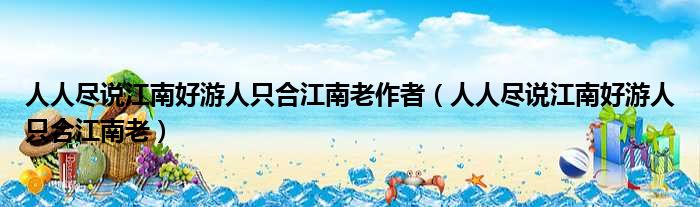 人人尽说江南好游人只合江南老作者(人人尽说江南好游人只合江南老)
