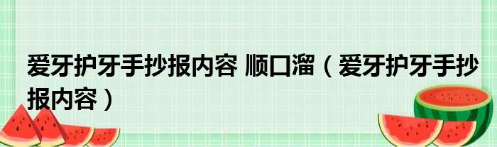 爱牙护牙手抄报内容 顺口溜(爱牙护牙手抄报内容)
