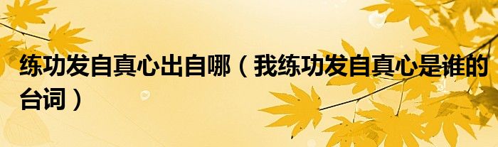 导读 大家好,今天小六子来为大家解答以下的问题,关于练功发自真心出自哪,我练功发自真心是谁的台词这个很多人还不知道,现在让我们一起来看看