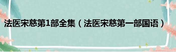 导读 大家好,今天小六子来为大家解答以下的问题,关于法医宋慈第1部全集,法医宋慈第一部国语这个很多人还不知道,现在让我们一起来看看吧!1、