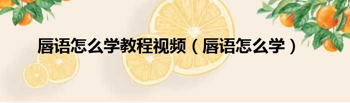 导读 大家好,今天小六子来为大家解答以下的问题,关于唇语怎么学教程视频,唇语怎么学这个很多人还不知道,现在让我们一起来看看吧!1、这个没法