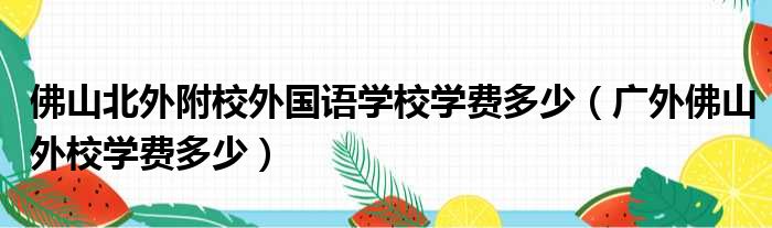 导读 大家好,今天小六子来为大家解答以下的问题,关于佛山北外附校外国语学校学费多少,广外佛山外校学费多少这个很多人还不知道,现在让我们一